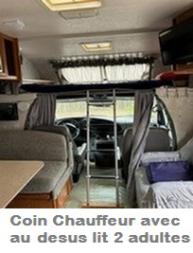 Une chambre pour deux adultes - Un lit pour deux adultes dans la capucine ( au dessus du chauffeur )- Un lit en enlevant la table de cuisine ce qui fait un lit supplémentaire - Un coin douche indépendant avec eau chaude et eau froide - Un coin WC indépendant avec lavabo - WC et rangement - Cuisine équipée d'une gazinière 3 brûleurs, d'un four à gaz, d'un double bac de cuisine avec eau chaude et eau froide - Un micro-ondes fonctionnant sur 110w - Un réfrigérateur et congélateur fonctionnant sur 110w et sur le gaz propane,33 - 1 BBq - 3 détecteurs de gaz, une climatisation - Deux panneaux solaires alimentant 2 batteries - Un chauffage sur 110w et batterie -7 ceintures de sécurité - Des marche pieds électriques - 2 stabilisateurs manuels pour la nuit - De grands rangements intérieurs et extérieurs.7 CEINTURES DE SECURITÉ